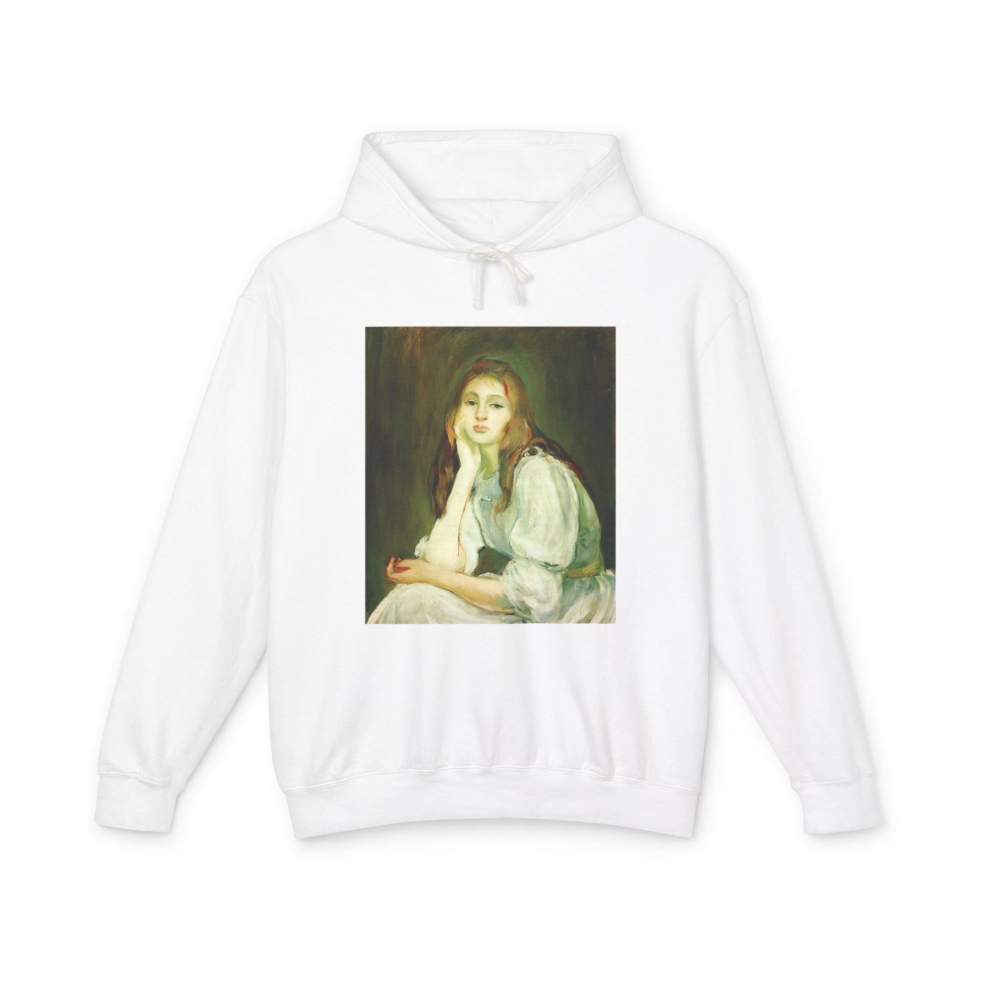 Berthe Morisot’s Julie rêvant (Julie Daydreaming, c. 1894) shows her daughter lost in thought, painted with delicate, airy brushwork and soft pastels. As one of the few prominent women of the Impressionist circle, Morisot brought a feminine, intimate perspective to the movement’s exploration of modern life while challenging conventions and revealing profound emotional depth. Wear her quiet elegance and sensitivity with apparel inspired by her art.