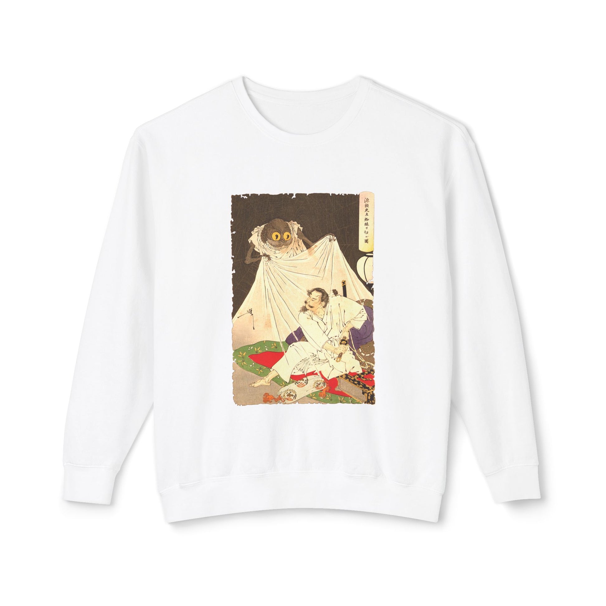 Yoshitoshi’s Raikō Gojō Kumo Taiji no Zu (Minamoto no Yorimitsu Fighting the Earth Spider, 1890) captures the legendary warrior battling a giant spider and its army of demons. Yoshitoshi’s work revitalized Japanese folklore and woodblock printmaking during its decline, inspiring the next generations. Infuse your daily style with the fierce energy of this battle.
