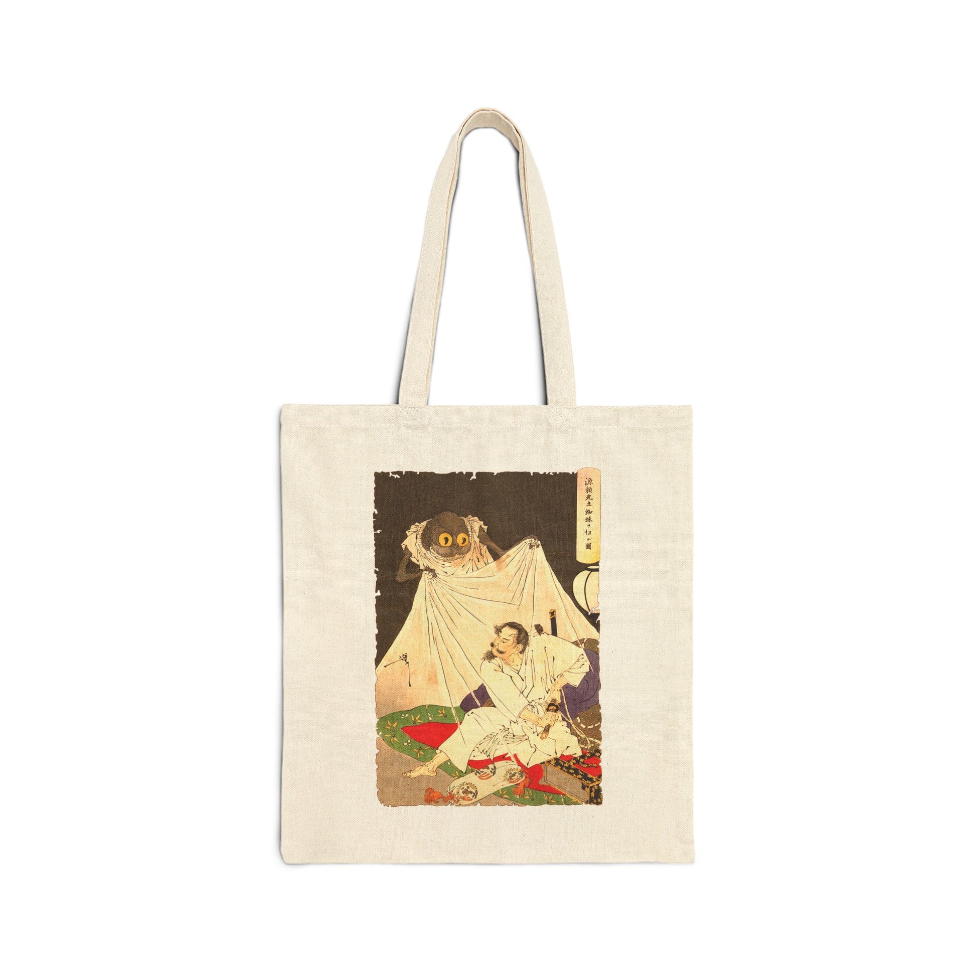 Yoshitoshi’s Raikō Gojō Kumo Taiji no Zu (Minamoto no Yorimitsu Fighting the Earth Spider, 1890) captures the legendary warrior battling a giant spider and its army of demons. Yoshitoshi’s work revitalized Japanese folklore and woodblock printmaking during its decline, inspiring the next generations. Infuse your daily style with the fierce energy of this battle.