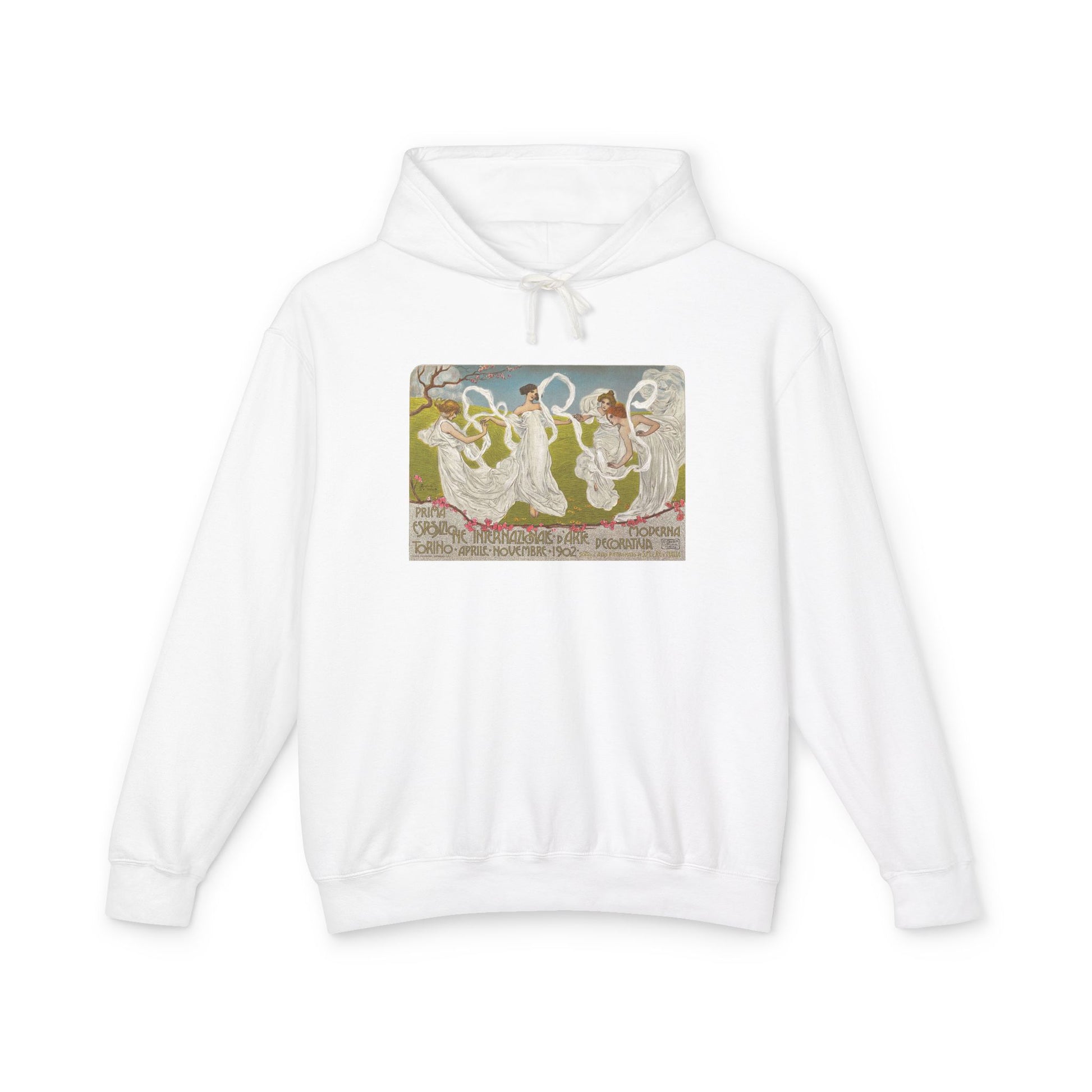 Bistolfi’s poster for the Esposizione Internazionale d'Arte Decorativa Moderna (1902) celebrates the union of fine and decorative arts. Flowing lines, soft colors, and graceful figures reflect the ideals of the Italian Art Nouveau movement, known as Stile Liberty. The work promotes art as both beautiful and functional. Bring the same philosophy to life with apparel that blends utility and beauty in wearable prints.