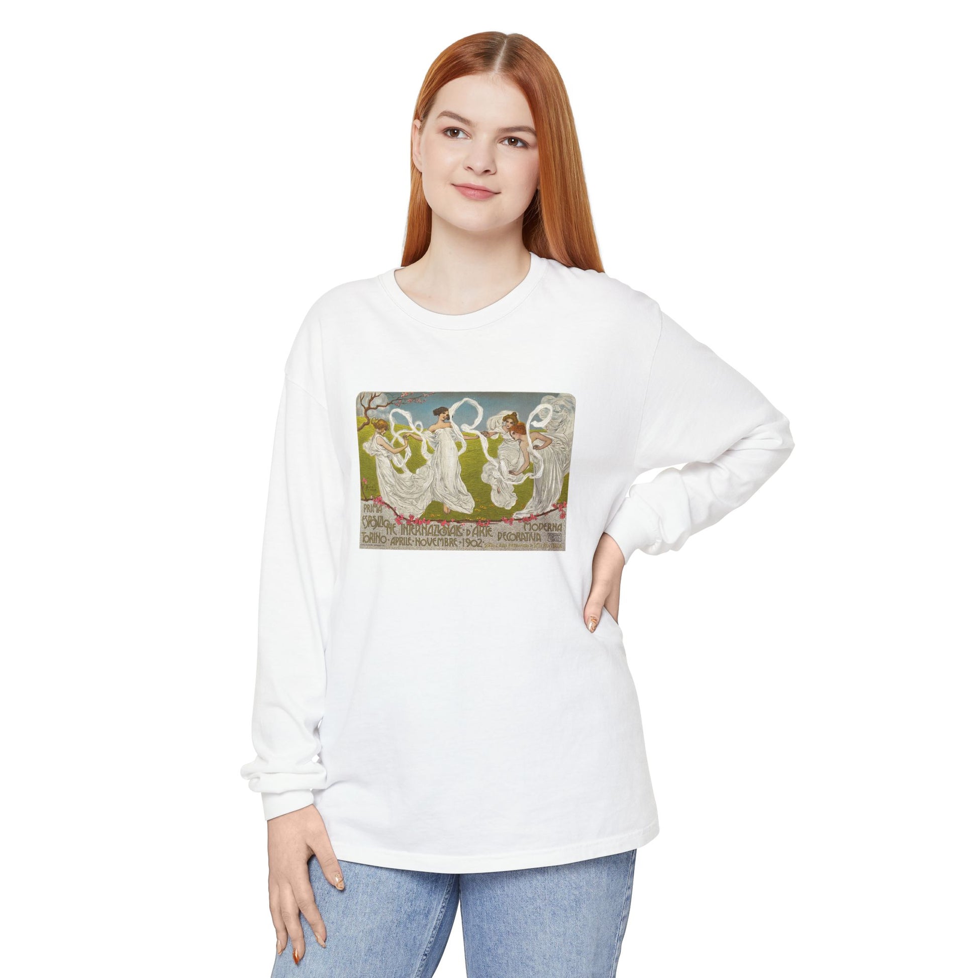 Bistolfi’s poster for the Esposizione Internazionale d'Arte Decorativa Moderna (1902) celebrates the union of fine and decorative arts. Flowing lines, soft colors, and graceful figures reflect the ideals of the Italian Art Nouveau movement, known as Stile Liberty. The work promotes art as both beautiful and functional. Bring the same philosophy to life with apparel that blends utility and beauty in wearable prints.