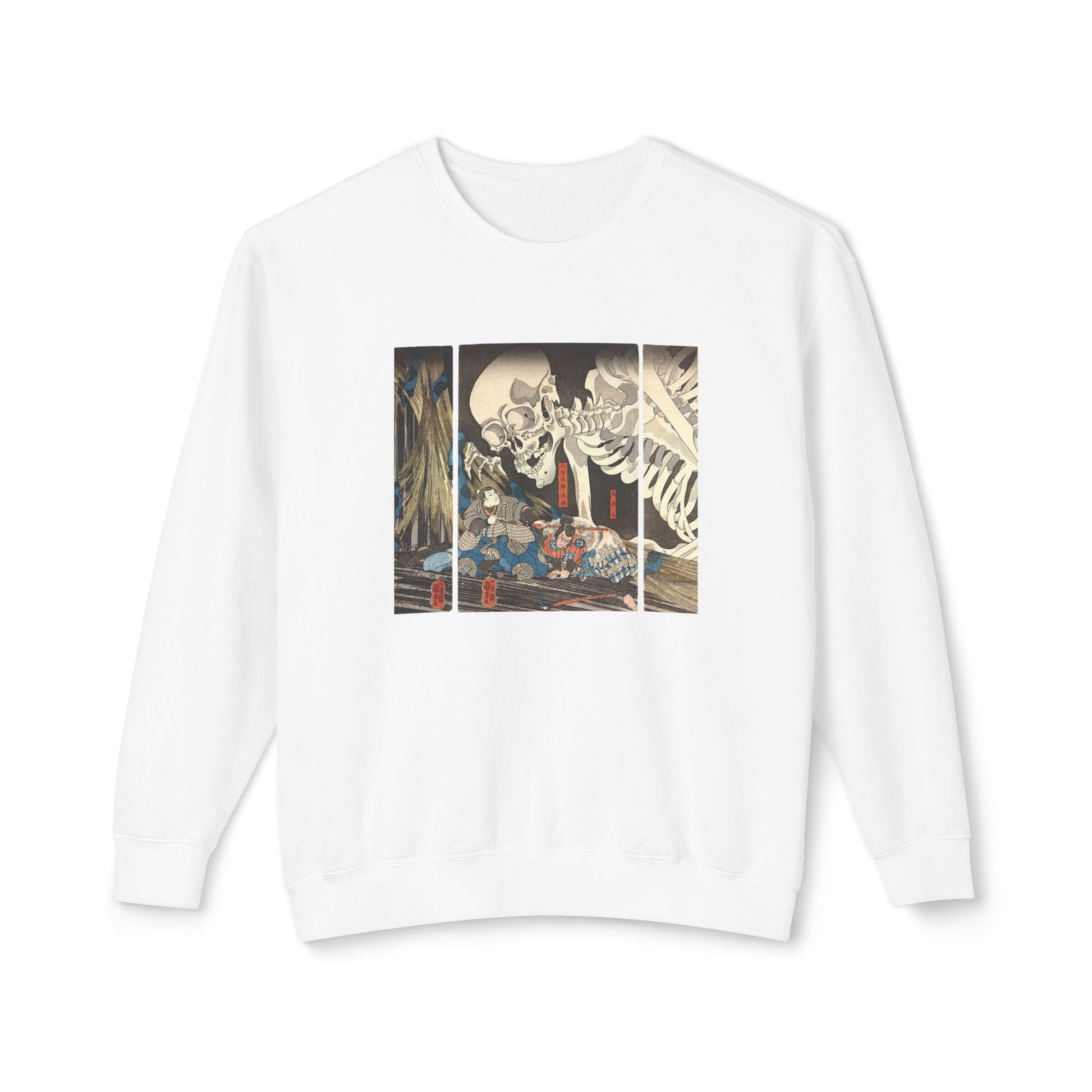 Kuniyoshi’s Takiyasha Hime no Yōkai Gashadokuro (Takiyasha the Witch and the Skeleton Spectre, c. 1844) shows the sorceress summoning a giant skeleton to terrify imperial soldiers. As a master of warrior and supernatural prints, Kuniyoshi's work influenced manga and fantasy art for generations. Embrace the eerie power of this legendary scene with clothing that stands out.