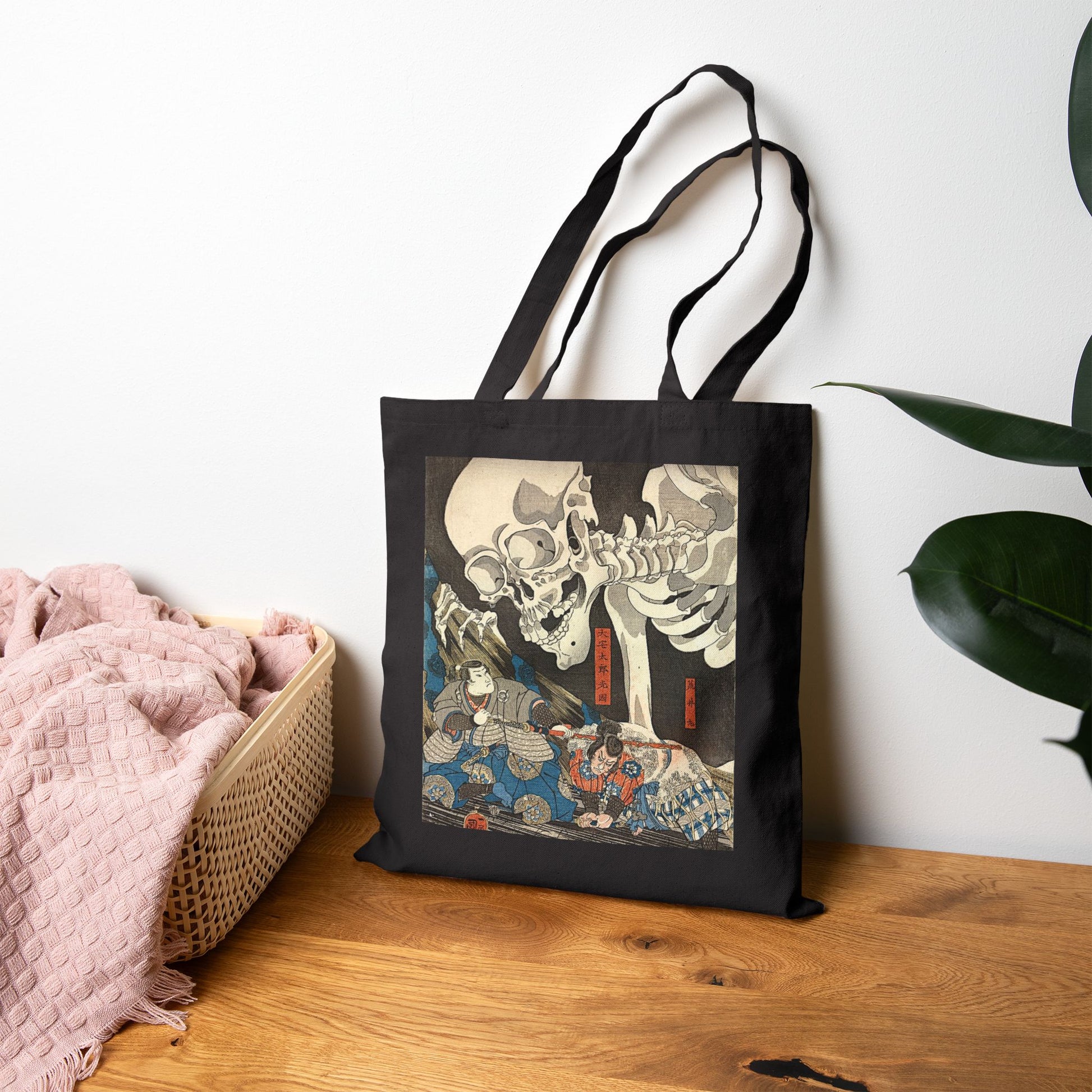 Kuniyoshi’s Takiyasha Hime no Yōkai Gashadokuro (Takiyasha the Witch and the Skeleton Spectre, c. 1844) shows the sorceress summoning a giant skeleton to terrify imperial soldiers. As a master of warrior and supernatural prints, Kuniyoshi's work influenced manga and fantasy art for generations. Embrace the eerie power of this legendary scene with clothing that stands out.