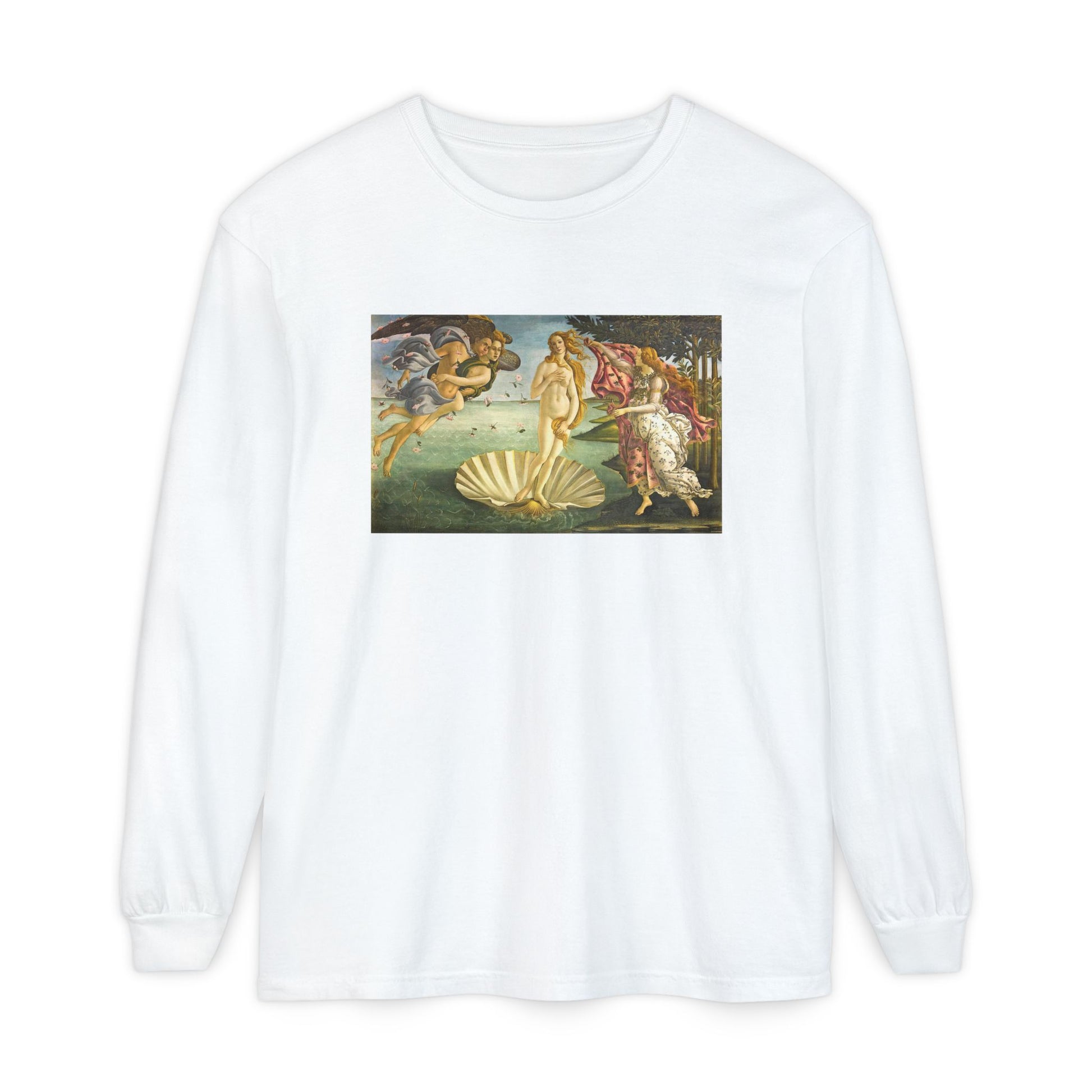 The Birth of Venus (Nascita di Venere) by Sandro Botticelli, painted in the late 15th century (c. 1484–1486), depicts the goddess Venus emerging from the sea on a shell. The painting reflects the ideals of the Early Renaissance, blending classical mythology with graceful linear style and delicate color. Commissioned for the Medici family, Botticelli’s work became one of the most celebrated images of its time. Let its iconic beauty inspire your wardrobe.