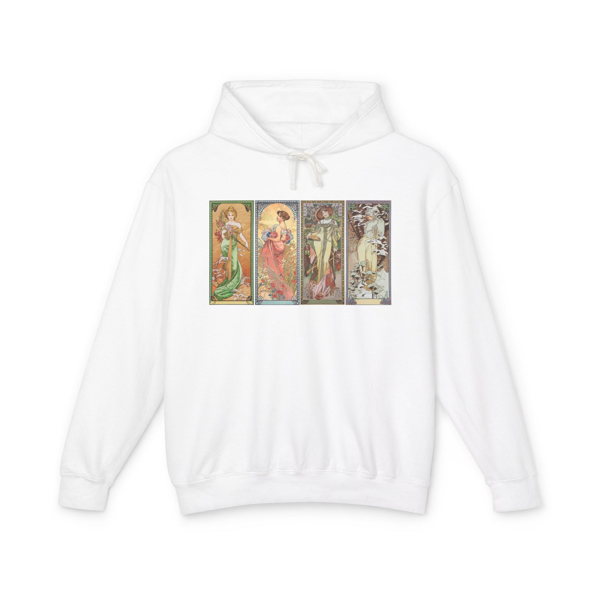 Les Saisons (1900) by Alphonse Mucha is a radiant quartet of decorative panels representing Spring, Summer, Autumn, and Winter as graceful women surrounded by lush natural motifs. The work reflects the movement’s embrace of nature’s rhythms, elevating everyday decoration into timeless images. Bring Mucha's elegance into the modern day with printed apparel inspired by his art.